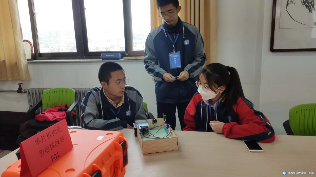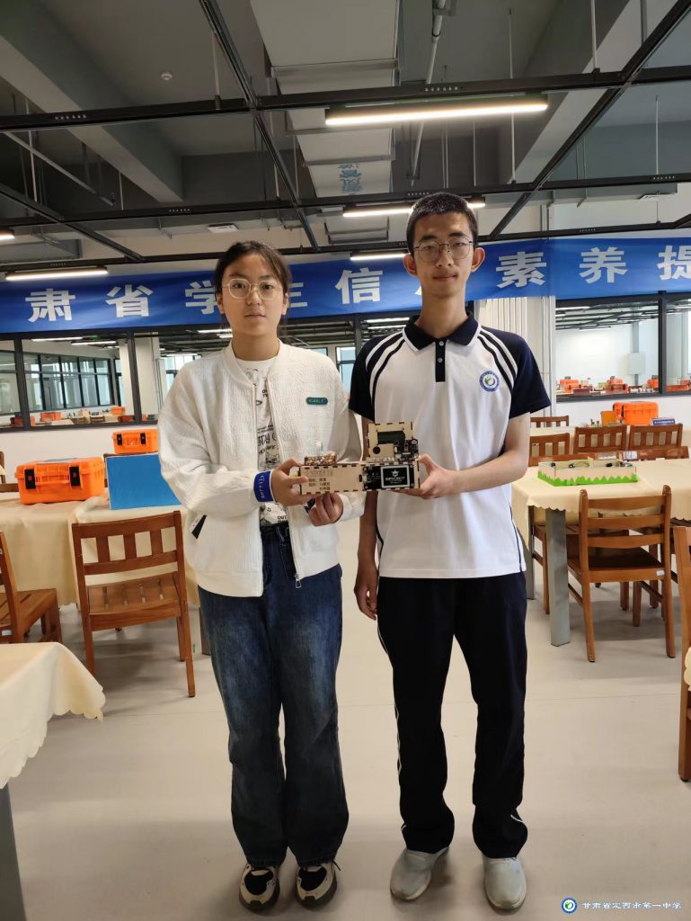 5 月 20 日至 21 日, 2023 年甘肅省學生信息素養(yǎng)提升實踐活動“科創(chuàng)實踐類”現(xiàn)場活動在蘭州舉辦。我校3名隊員參加的人工智能——單片機創(chuàng)意智能挑戰(zhàn)賽比賽規(guī)則要求隊員按照隨機抽簽的方式與全省其他市州的代表隊員進行組隊,經過賽前抽簽,比賽隊伍分為8組,共計24人參加該項目角逐。我校杜林璇、馬景宣與蘭州新區(qū)高級中學莫涵組成F02小組,我校石淵博與天水市田家炳中學王琪、蘭州新區(qū)高級中學張建軍組成F01小組,經過20日的主題公布、功能代碼編寫、作品設計與制作、展示PPT制作和21日現(xiàn)場答辯,我校杜林璇、馬景宣與蘭州新區(qū)高級中學莫涵組成F02小組以0.06分的優(yōu)勢獲得該項目第一名的好成績。