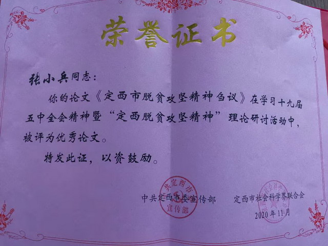 劉文祥同志在內官營鎮泉坪村開展駐村幫扶工作,立足實際,履職盡責,不斷加強基層黨建、改善基礎設施、促進產業發展、調動社會力量,使泉坪村的面貌發生了很大的變化,老百姓的思想觀念也跟著轉變了許多,逐漸由“要我脫貧”轉變為“我要脫貧”,形成了“你追我趕”的良好氛圍。梅花香自苦寒來,寶劍鋒從磨礪出。2018年,劉文祥同志帶領的駐村幫扶工作隊被評為“全省脫貧攻堅幫扶先進集體”;2019年,被評為“全省脫貧攻堅幫扶先進個人”;連續四年考核“優秀”,2020年被記“三等功”一次。