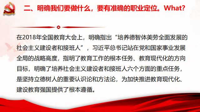 作為一名教師,我們肩負著祖國下一代健康成長的光榮使命,我們是人類靈魂的工程師,是人類文明的傳承者,我們的職業是偉大的,所以我們也要有一名教師的身份認同感。