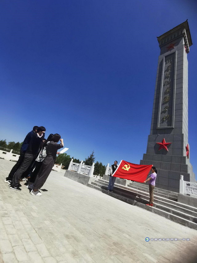 ? 在定西市安定區內官營鎮烈士陵園,瞻仰了為紀念陳超群、王英才、陳清俊、程振綱、楊積璽等烈士而建的紀念碑。在“為人民而死”的紀念碑前,黨員同志們面對著黨旗,緊握右拳,重溫入黨誓詞,牢記初心使命。繼承先烈的光榮傳統,學習先烈們的偉大精神,我們將在新時代的偉大征程中奮勇前進。英雄的精神不朽,英雄的事業永續!