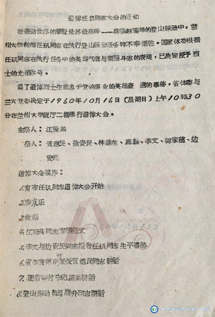 汪璣犧牲后,同伴們忍著悲痛用汽油將其火化,僅用罐頭盒帶回兩根骨頭。1960年8月,中華人民共和國體育運動委員會同甘肅省體育運動委員會追認汪璣為革命烈士。1960年10月16日,蘭州大學為其舉行隆重的追悼會,校黨委書記江隆基在悼詞中高度評價了汪璣的革命精神,甘肅省體委、蘭州大學在蘭州華林山烈士陵園為汪璣立碑紀念。