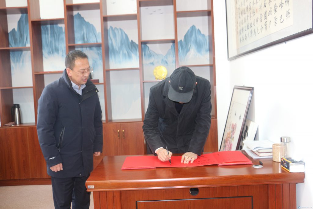 臨別之際,薛廷貴、韓戎熱情地簽名贈書予母校留念,并祝福母校越辦越好。