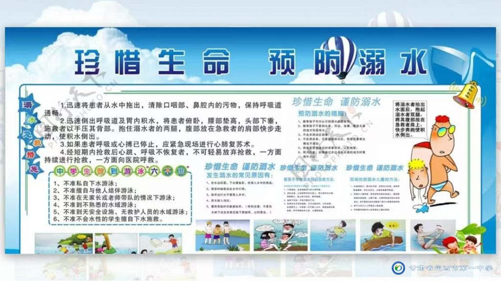 1.嚴(yán)防溺水:教育孩子牢記“六不一會(huì)”(不私自下水游泳;不擅自與他人結(jié)伴游泳;不在無家長或教師帶領(lǐng)的情況下游泳;不到無安全設(shè)施、無救援人員的水域游泳;不到不熟悉的水域游泳;不熟悉水性的學(xué)生不擅自下水施救。學(xué)會(huì)基本的自護(hù)、自救方法。不私自下水、不盲目施救等),遠(yuǎn)離危險(xiǎn)水域。