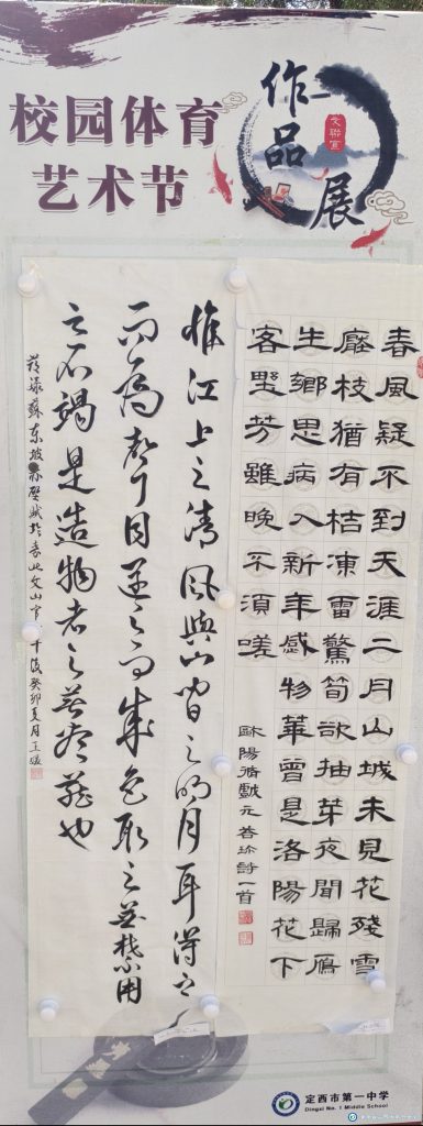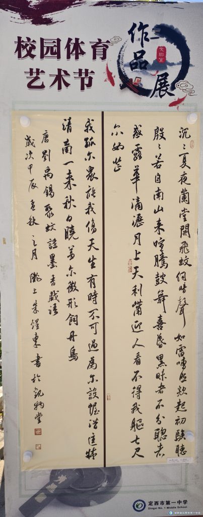 本屆校園體育藝術(shù)節(jié)書畫作品展上作品形式多樣、豐富多彩、百花齊放,同學(xué)們以歌聲、舞蹈、戲劇等多種形式,展現(xiàn)了他們獨特的藝術(shù)才華和深邃的情感世界;運動場上運動健兒們揮灑汗水,挑戰(zhàn)自我,用速度與力量詮釋了青春的活力與拼搏的精神。全校師生展示體育技能、挑戰(zhàn)自我極限、培育團隊精神,創(chuàng)造屬于自己的精彩人生,展現(xiàn)定中人的良好風(fēng)貌。
