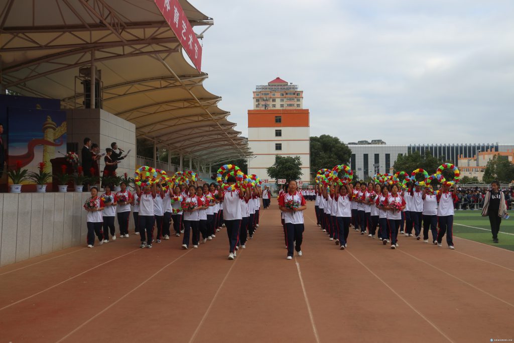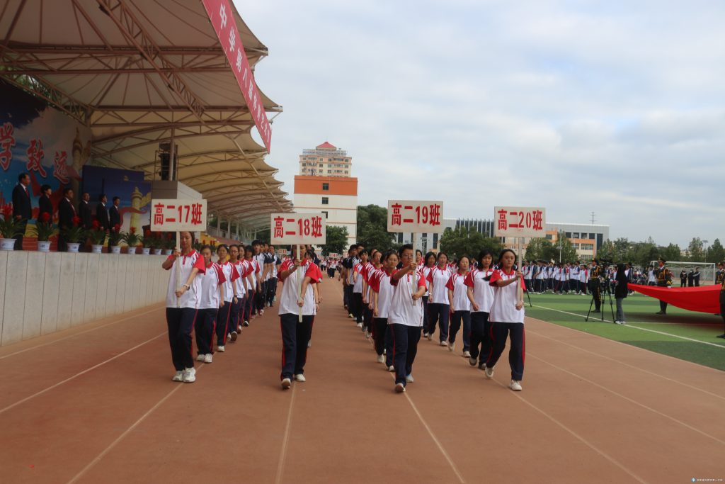 學(xué)校領(lǐng)導(dǎo)與全體師生齊聚運動場,共同見證這一校園盛事。開幕式伊始,各方隊依次入場,國旗方隊莊嚴領(lǐng)銜,紅旗方隊迎風(fēng)招展,節(jié)旗班旗方隊精神抖擻,花束方隊朝氣蓬勃,運動員方隊意氣風(fēng)發(fā),每一個整齊劃一的步伐都彰顯著一中學(xué)子的風(fēng)采。