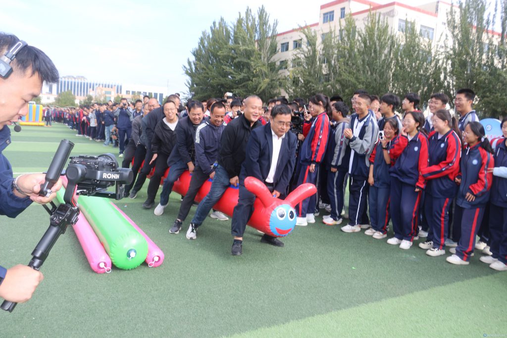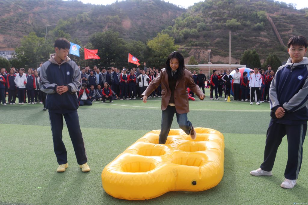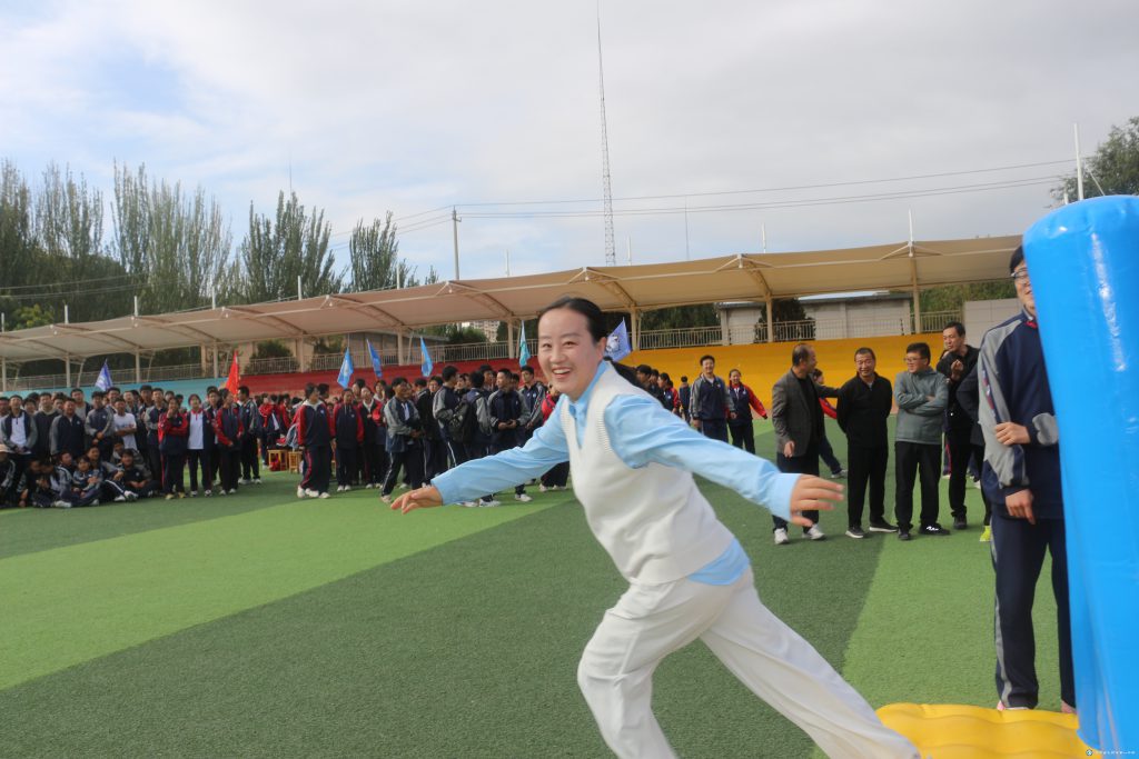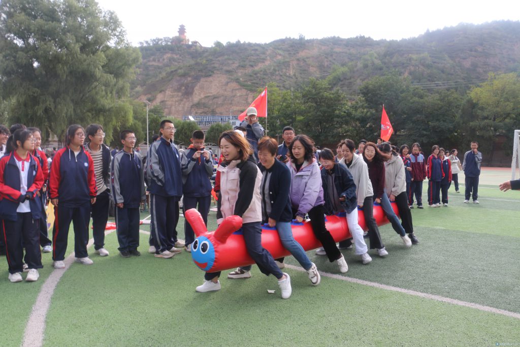 隨后,備受期待的教職工趣味運動會正式開始。“趣味毛毛蟲”、“障礙往返接力”、“蒸蒸日上”等項目輪番上演,老師們一改平日嚴肅形象,在賽場上盡情釋放激情,展現(xiàn)了課堂之外的另一面風(fēng)采,學(xué)生們的加油聲、歡笑聲此起彼伏。教職工教研組4*100接力賽將整個上午的活動推向又一個高潮,各教研組老師通力合作,奮力拼搏,用實際行動詮釋了體育精神。