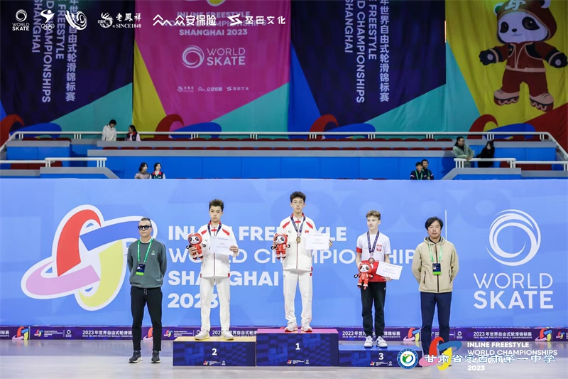 2023年世界自由式輪滑錦標賽青年男子組花式繞樁比賽中,我校王宇軒同學代表中國隊獲得冠軍。