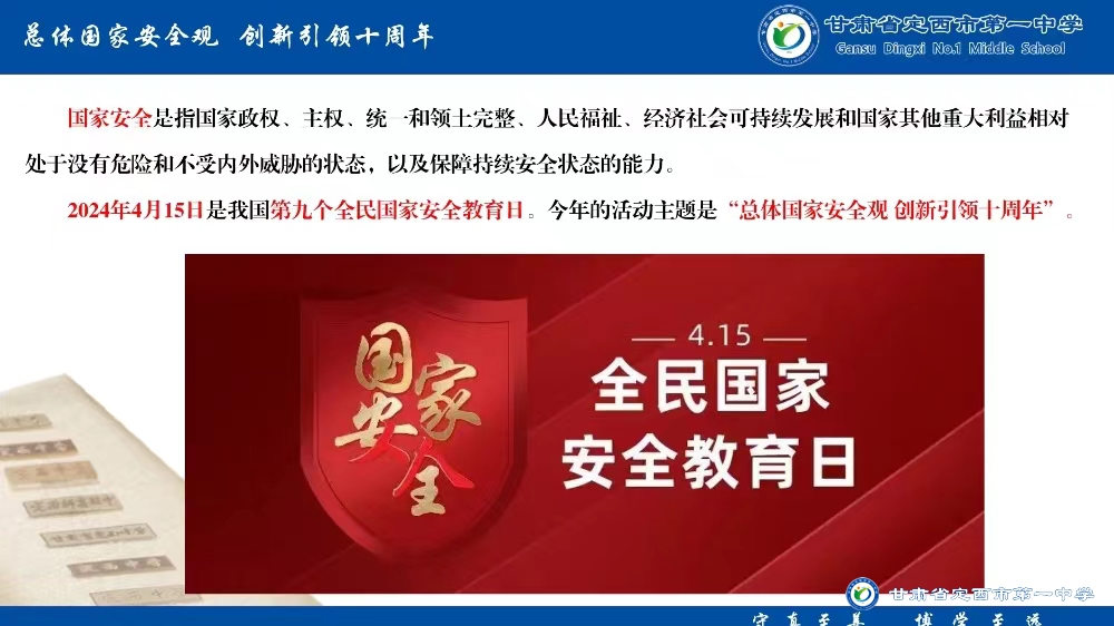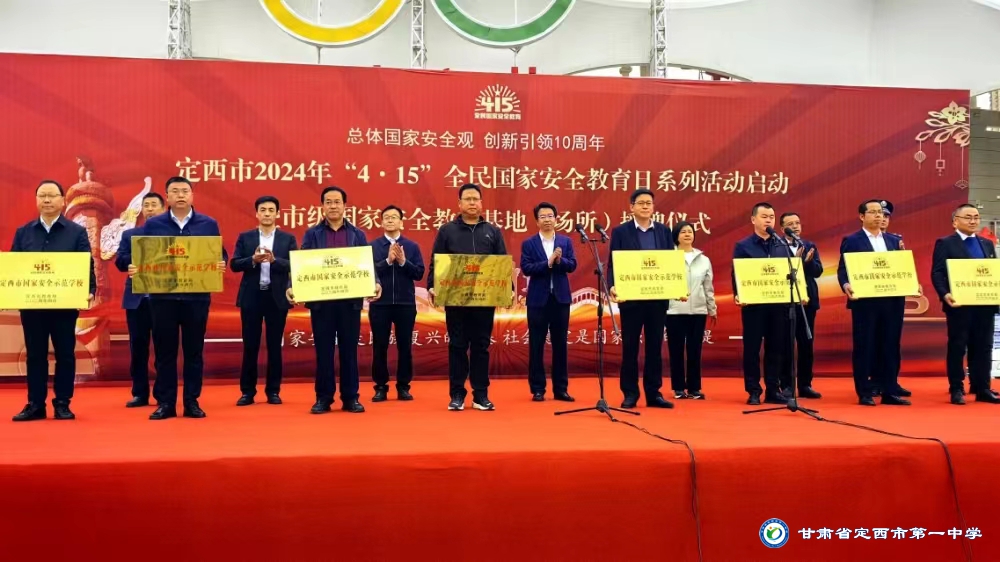 4月15日,我校副校長張小兵參加了定西市2024年“4?15”全民國家安全教育日系列活動(dòng)啟動(dòng)暨市級國家教育基地(場所)授牌儀式,我校被授予定西市國家安全示范學(xué)校。