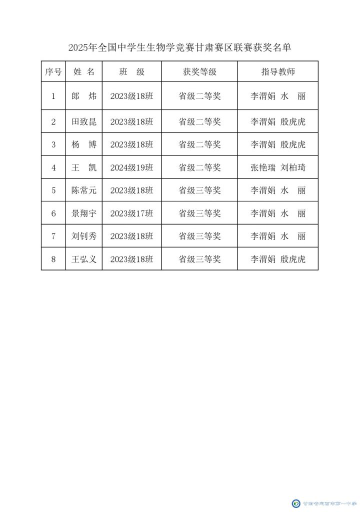 在接觸生物競賽以來,陸續學習了《普通生物學》、《細胞生物學》及動、植物學的相關知識,在今年的中學生生物學甘肅省聯賽中以省第九名的成績進入國賽,最終獲得銅牌。學習生物競賽知識的過程激發了我對于生命科學的興趣,拓寬了我的知識視野,讓我感受到生命科學廣博精深、生生不息之美。結識同齡的學科高手,也讓我認識到了自己各方面的不足。一路走來,班級良好的討論氛圍,老師的指導與引領以及學校對中學生學科競賽的重視都使我受益良多。