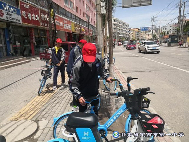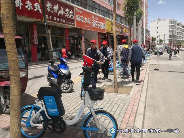 6月8日活動(dòng)正式啟動(dòng),在鮮艷的共青團(tuán)旗下,志愿者們集合完畢整裝待發(fā)。當(dāng)天下午13:40分,一部分志愿者們佩戴“紅帽子”、“紅哨子”、“紅旗子”在校外馬路及校門口兩側(cè)組織同學(xué)們有序進(jìn)入校園,對于不遵守交通規(guī)則、在校園內(nèi)騎車的行為進(jìn)行嚴(yán)格監(jiān)督和耐心批評教育。另一部分志愿者在保衛(wèi)處、團(tuán)委教師的引導(dǎo)下對校門周邊馬路兩側(cè)亂停亂放的共享單車進(jìn)行了集中擺放,同學(xué)們以自己的行為彰顯了一中學(xué)子應(yīng)有的素養(yǎng),更用自己的行動(dòng)帶動(dòng)了更多市民積極參與到文明公益活動(dòng)中。