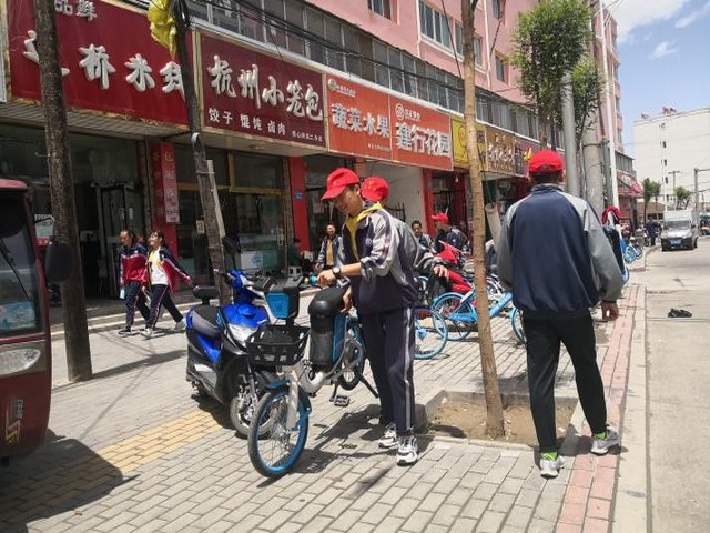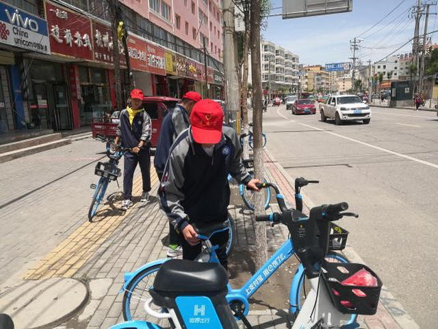 2. 志愿者擺放整理校門口兩邊道理沿線和周邊亂停亂放的共享單車,積極引導市民自覺有序停放共享單車,以自己的行動帶動更多市民規范出行,讓更多市民積極參與文明公益活動中去。