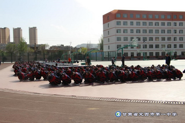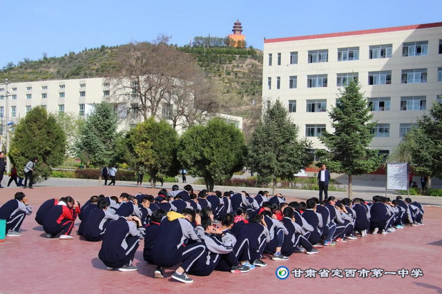 按照《定西市第一中學2018年預防(地震、火災、反恐)緊急疏散演練活動方案》,16時50分,學校領導、年級主任、班主任、保衛人員按時到位, 16時55分,警報聲突然響起,上課的老師馬上組織學生有序撤離,全校近3000名學生沿著安全指示標志,按預定疏散路線迅速而有序地撤出教學樓,并在預先指定的位置集合清點人數,總耗時5分鐘,出色地完成了本次演練任務。