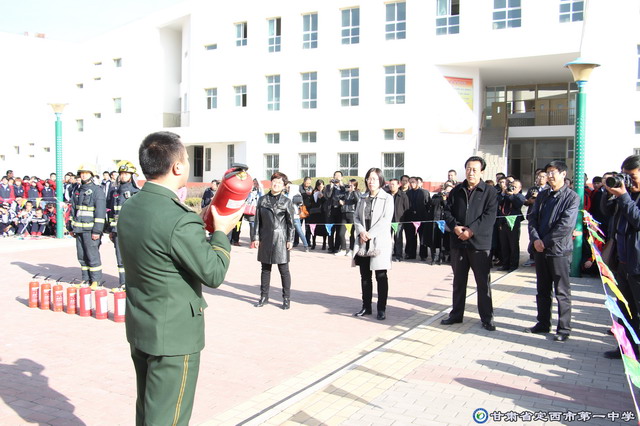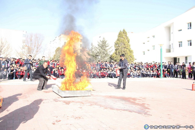 疏散演練結束后,由定西市消防大隊宣教室主任韓鈺為師生講解并演示了滅火裝置的使用,并請景局長、盛校長、張書記等領導和部分師生進行了實際滅火操作實驗。隨后,盛校長陪同景局長、陳主任以及城區各學校分管消防的副校長檢查了我校的消防設施。師生們認真聽取了由消防大隊舉辦的消防知識講座。