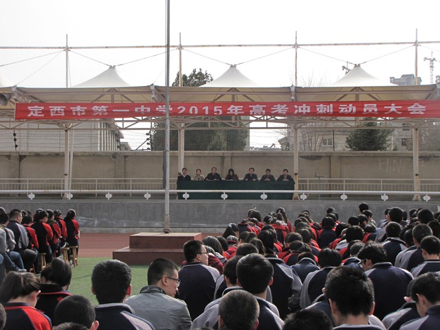 3月27日下午,高三年級全體師生齊聚學校田徑場,參加2015年高考沖刺動員大會。會議由校黨委書記張東銳主持,校長盛淑蘭、副校長魏嵋、校黨委副書記趙惠琴、工會主席吳有海、教務處主任王國仁出席了會議。大會舉行了莊嚴的升旗儀式。