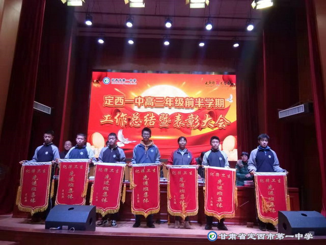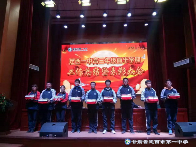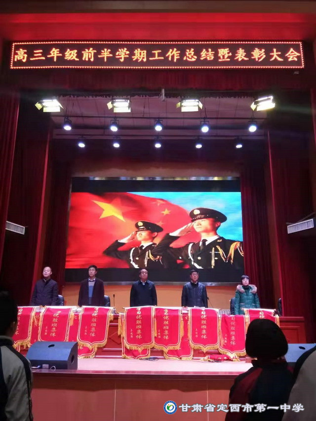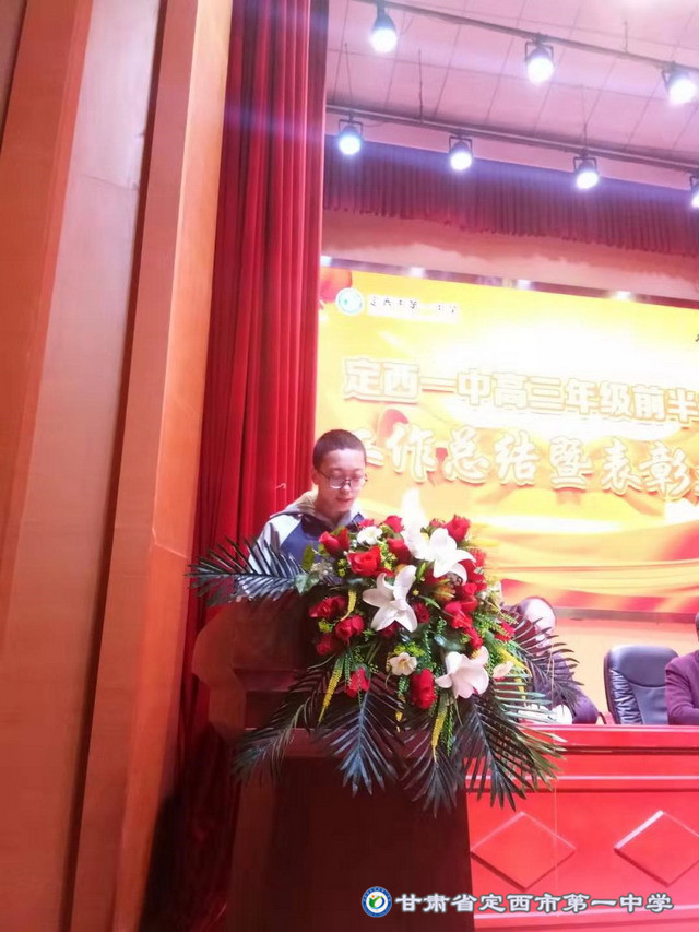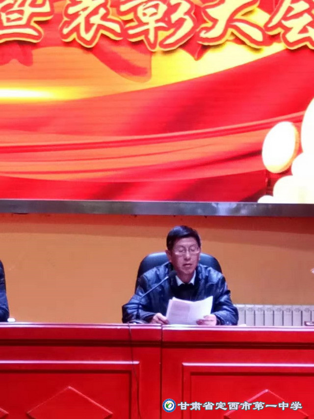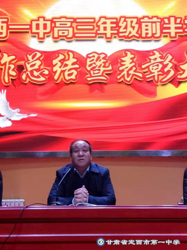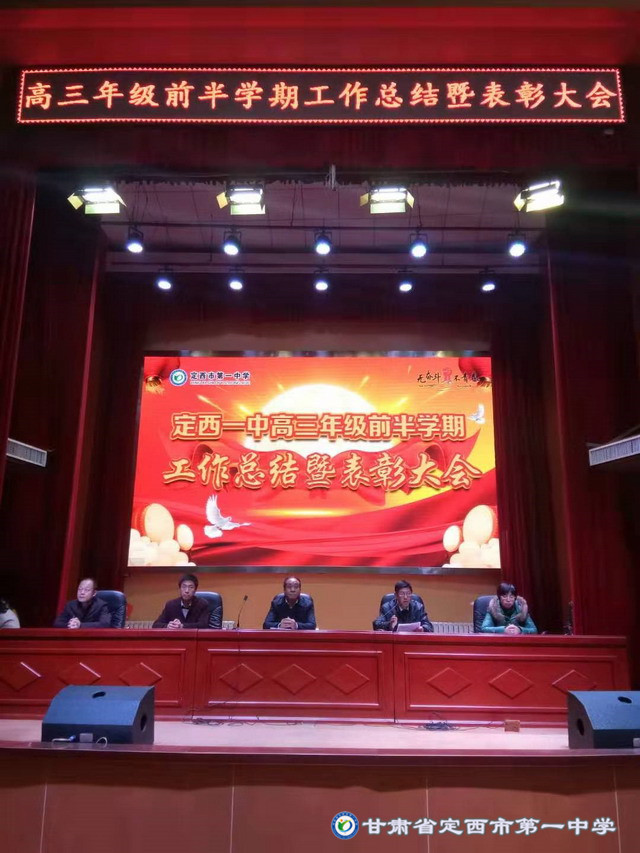 2019年12月4日下午5:00高三年級在啟智樓多功能報告廳舉行了第一學期前半學期總結暨表彰大會。會議由校黨委書記劉興宇主持,校長楊繼柏,總務處主任姚海軍,教務處副主任陳玉琴,年級部主任張勝林和高三年級全體師生共同參加。