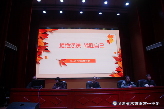 11月14日下午,高三年級全體師生齊聚啟智樓報告廳,召開期中考試總結暨表彰大會,校長楊繼柏、副校長劉順義、高三年級中層領導教務處副主任陳玉琴、政教處副主任陳曉東、年級部主任王景龍出席會議,會議由劉校長主持。