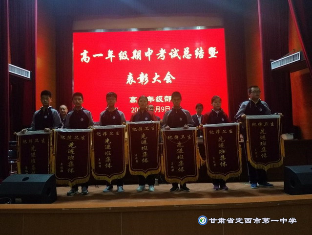 5月9日下午5:00,高一年級部在多功能報告廳舉行本學期期中考試總結暨表彰大會,會議由副校長劉興宇主持。校長楊繼柏,團委書記田永強、副書記安常勝、年級部主任張勝林和高一年級全體師生參加大會。