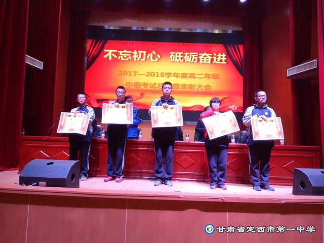 接著,教務處主任王國仁、辦公室主任李愛軍宣讀了優秀班集體、學習標兵、進步標兵、優秀班干部的表彰決定,楊校長和年級部領導為獲獎的集體和個人分別頒發了流動紅旗、獎狀和獎品。