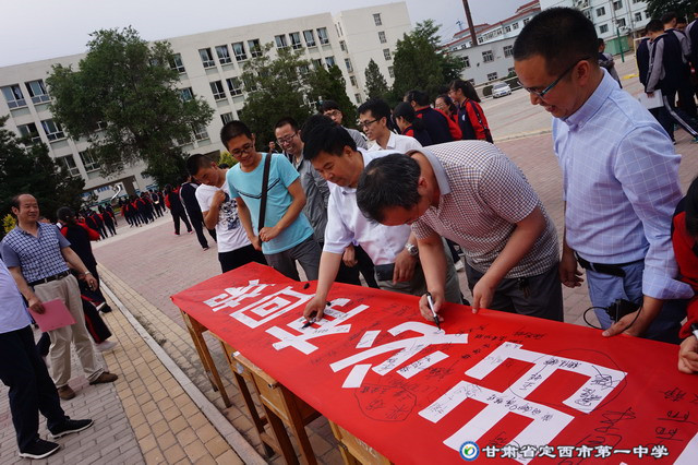 教師代表杜偉林和學生代表包文靜、成文奎分別發言。杜老師以自己親和的語態和生動的語言鼓勵同學們,要在接下來的時間里要把握好自己,一心向學習,為自己一年后的成功打下堅實的基礎。包文靜、成文奎兩位同學以鏗鏘有力的言語向學校、向老師、向家長、向同學們作出了保證,在他們的言語中,學校領導和全體老師們感受到了同學們為2018年高考再創佳績的自信和勇氣。