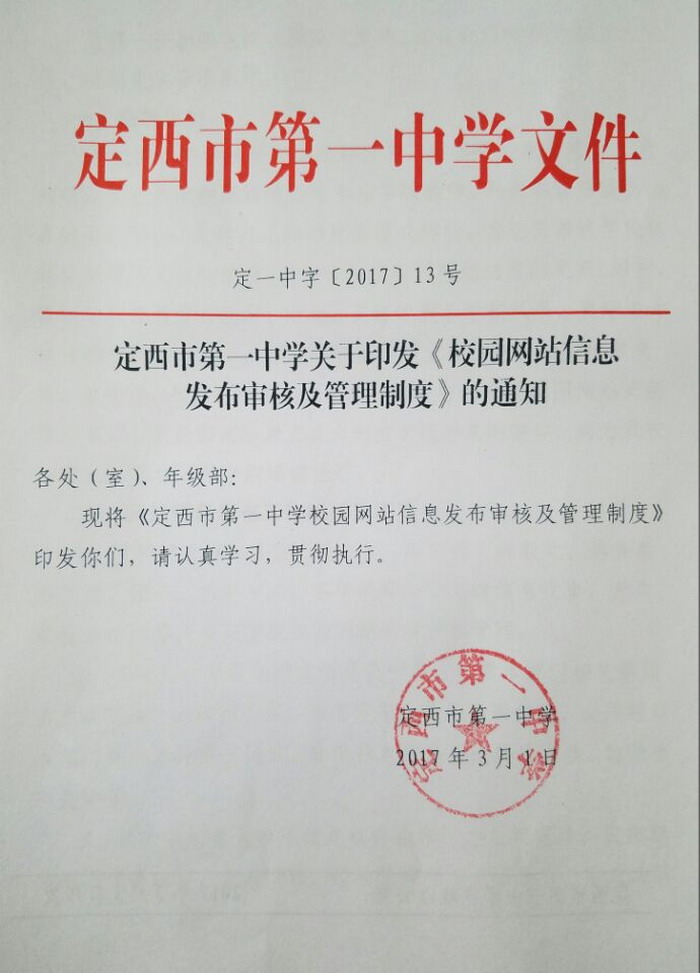 定西市第一中學網站信息發布審核及管理制度 時間:2017-03-10 分類:數字校園 分享: 上一個: 我校確定2016-2017學年度校園網信息員 下一個: 我校召開2017-2018學年校園網信息員會議 相關文章 定了!省級智慧教育標桿校 信息中心第16周工作總結 信息中心第14周工作總結 提升服務意識 鍛造精品團隊 站在新起點 迎接新挑戰 提升科創意識 培養復合型人才 做好服務工作 提高服務質量 精心部署 狠抓落實