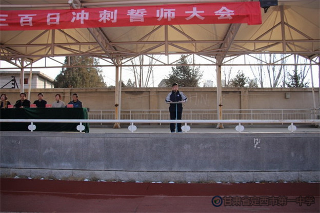 接著,賈亞萍老師代表高三年級全體教師鄭重承諾,將與同學們風雨同行、同舟共濟,做同學們的堅強后盾。她結合具體事例啟發同學們在接下來的一百天里要安心定志、自信不疑、忙而不亂,爭取在2017年高考中再創佳績。