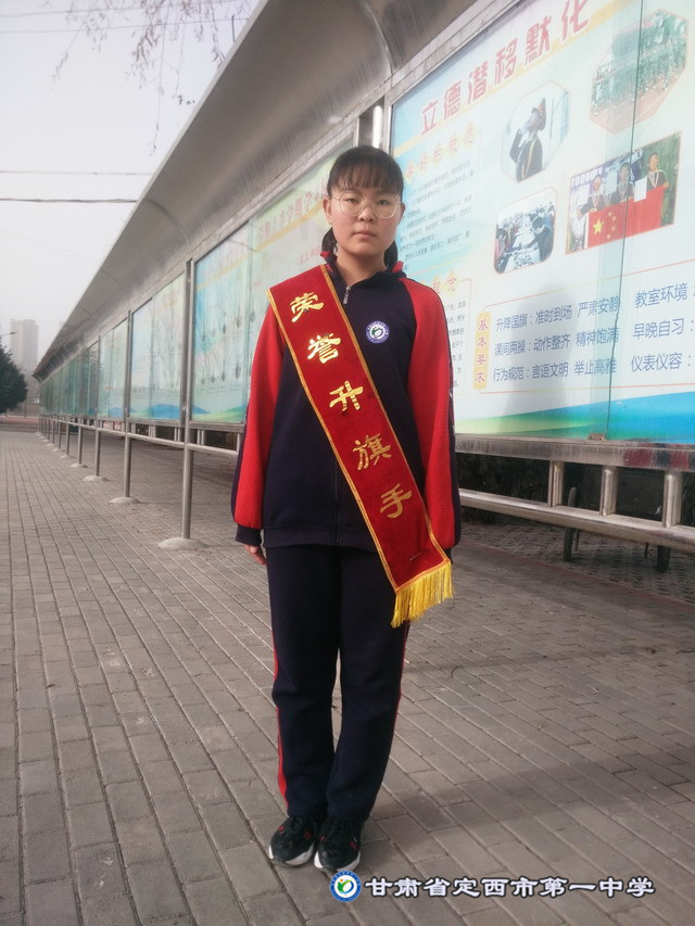 榮譽升旗手—景瑞 時間:2018-11-26 分類:榮譽升旗手 本周的榮譽升旗手是高二(10)班的景瑞同學。她尊師守紀,敬老愛親,陽光開朗,積極向上,銳意進取,努力拼搏,從入學時的538名,進步到本學期其中考試的文科班第一、年級第一的佳績,在2017-2018學年度被學校評為“三好學生”。生活中,她擅長書法。作為班上的語文課代表,她積極協助老師,幫助同學。 她的座右銘是:“心高氣傲銳不減,命運由我不由天”。 (撰寫:劉柏琦) 分享: 上一個: 榮譽升旗手—王佳 下一個: 榮譽升旗手—楊旻 相關文章 榮譽升旗手——權佳 榮譽升旗手——范凱妮 榮譽升旗手——張金彪 榮譽升旗手——張可 榮譽升旗手——李炎培 榮譽升旗手——楊烜 榮譽升旗手——楊婷玉 榮譽升旗手——李佳瑋