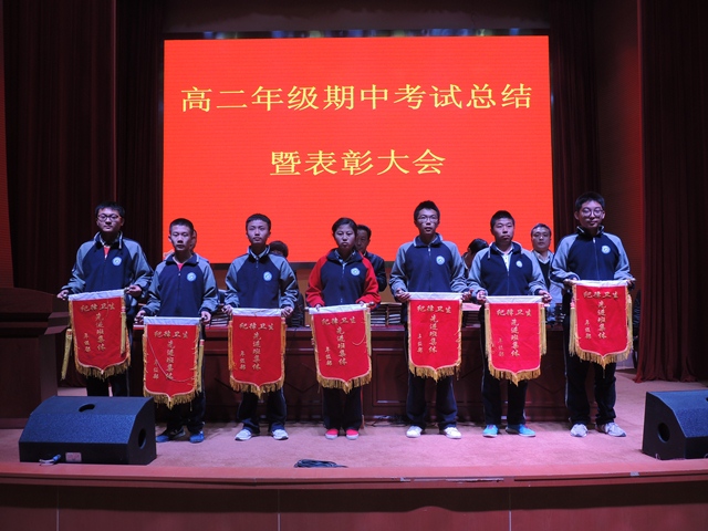 為了全面提高教育教學質(zhì)量,實現(xiàn)學校新一輪教育教學目標,進一步調(diào)動同學們的學習積極性,樹立比、學、趕、幫、超的學習氛圍,夯實教學基礎,樹立先進典型,促進年級各項工作上臺階、上水平,5月12日下午17:00,高二年級在多功能報告廳舉行了本學期“期中考試表彰大會”。大會對期中考試中涌現(xiàn)出的學習刻苦、成績突出、進步明顯、團結和諧的班級、學習小組和優(yōu)秀個人進行了表彰獎勵。黨委書記張東銳、高二年級級部領導、各班班主任和全體學生參加了大會,會議由年級劉校長主持。