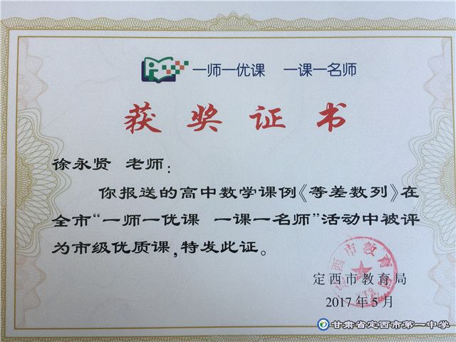 在定西市2016年“一師一優(yōu)課、一課一名師”活動(dòng)中,我校教師徐永賢的課例被評(píng)為市級(jí)優(yōu)質(zhì)課。