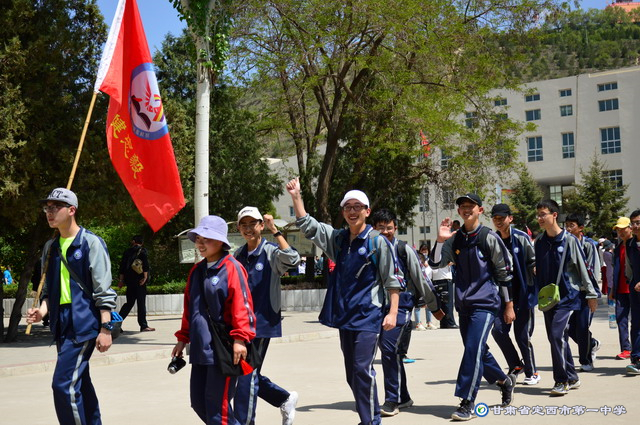 2:20啟動(dòng)儀式正式開(kāi)始,由副校長(zhǎng)田永強(qiáng)主持,首先黨委書(shū)記劉興宇致辭,希望同學(xué)們能夠挑戰(zhàn)困難,磨煉意志;團(tuán)結(jié)協(xié)作,嚴(yán)守紀(jì)律;親近自然,愛(ài)護(hù)環(huán)境;體驗(yàn)生活,活潑自信。在遠(yuǎn)足活動(dòng)中體現(xiàn)出一中人的素養(yǎng)和精神。接著,辦公室主任陳曉東帶領(lǐng)大家進(jìn)行宣誓,激昂的聲音響徹整個(gè)校園。第三項(xiàng)由校長(zhǎng)楊繼柏和黨委書(shū)記劉興宇分別授校旗和會(huì)旗,最后,楊校長(zhǎng)莊嚴(yán)宣布定西市第一中學(xué)第二屆備戰(zhàn)高考遠(yuǎn)足活動(dòng)正式開(kāi)始。在楊央主任的一聲號(hào)令下,全體師生有序出發(fā),精神抖擻,遠(yuǎn)足的征程由此拉開(kāi)了帷幕。