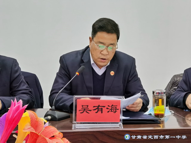 2021年1月14日上午,冬日暖陽,一年一度的定西市第一中學教職工代表大會在辦公樓三樓會議室隆重召開。會議由工會主席吳有海同志主持,黨委書記劉興宇同志致開幕詞。