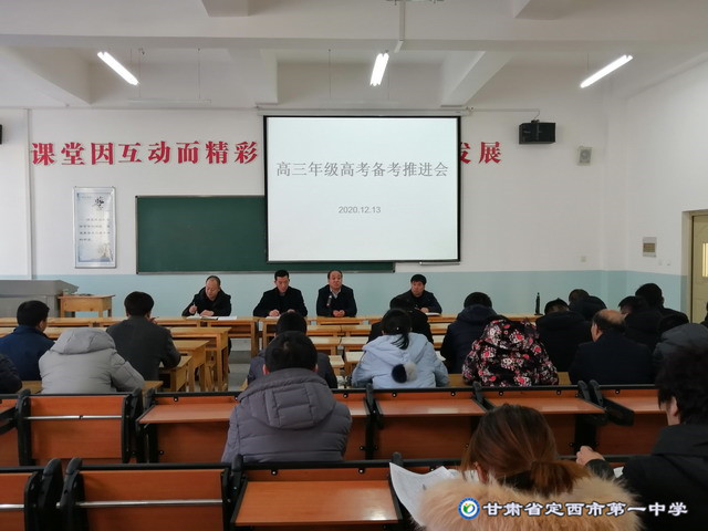 ? ?為了及時總結(jié)復(fù)習(xí)備考的經(jīng)驗,發(fā)現(xiàn)問題并彌補不足,使我校2021年高考備考工作更具有針對性和實效性,12月13日下午高三年級召開了高考備考推進會議,出席本次會議的學(xué)校領(lǐng)導(dǎo)有:校長楊繼柏、副校長王國仁、副校長田永強、高三年級主任張勝林,會議由副校長田永強主持。
