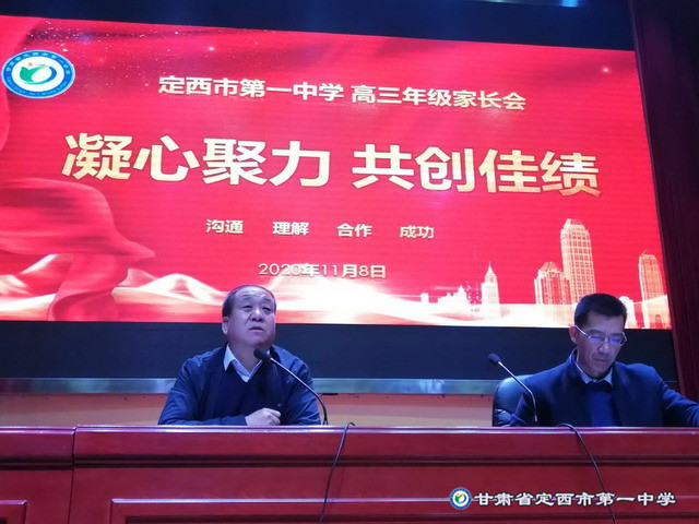 為了進(jìn)一步加強(qiáng)家校合作,11月8日下午我校高三年級召開了家長會,本次家長會共分為兩個階段進(jìn)行。第一階段由全體家長齊聚啟智樓一樓報告廳,召開了以“凝心聚力 共創(chuàng)佳績”為主題的大會。出席大會的學(xué)校領(lǐng)導(dǎo)有:校長楊繼柏、副校長田永強(qiáng)、辦公室主任陳曉東、高三年級主任張勝林,會議由副校長田永強(qiáng)主持。