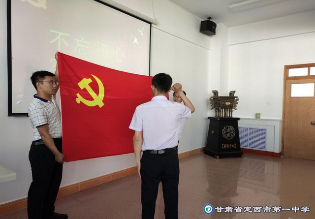 伴隨著莊嚴的國歌,慶祝大會拉開序幕。黨政辦公室主任陳曉東帶領全體黨員重溫入黨誓詞。