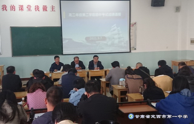 首先,年級主任王景龍就本次考試從平均分、尖子生、年級前160名和650名等學生分布情況做了詳細分析,并以不同班級內部的各科排名情況和貢獻人數為主,強調班主任和各任課教師根據分析的數據,有針對性的對問題學生進行指導,補齊短板。