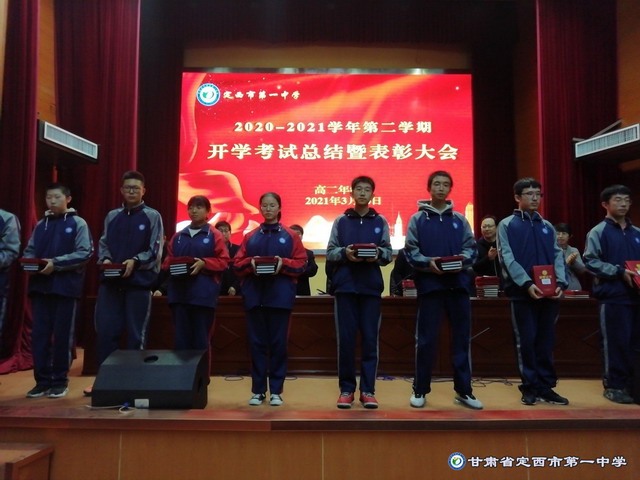 表彰大會在莊嚴的國歌聲中拉開帷幕。首先,政教處主任張小兵宣讀受表彰的先進集體和個人。這次大會表彰了高二19班等8個學習優勝班集體,趙子瑞等20名學習標兵,張睿等9名理科尖子生班優秀學生,王珺瑞等3名文科尖子生班優秀學生,袁淑娟等40名優秀寒假作業學生。隨后,與會領導分別為獲得各項榮譽的班級與個人頒發了獎狀。