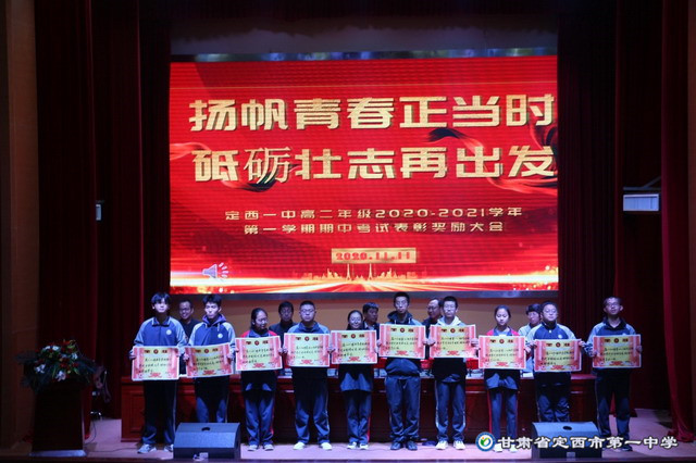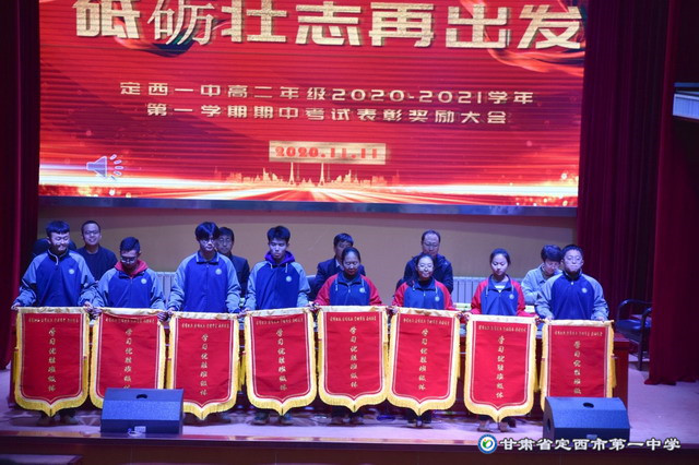 為了樹立典型,鼓勵先進,營造濃厚的學習氛圍,調動全體同學學習的主動性和積極性,2020年11月11日下午,高二年級期中考試總結表彰大會在報告廳隆重舉行。副校長王國仁,政教處主任張小兵,總務處副主任蔚澤軍,教務處副主任、年級部主任王景龍,團委副書記李曉燕出席了本次表彰大會。會議由政教處主任張小兵主持。