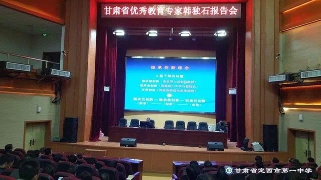 2017年10月16日下午,創新型教師楷模韓獨石先生來我校做學術報告來我校做“繼承創新理念和統籌教育思想的形成與運用”的專題學術報告。報告會由副校長魏嵋同志主持。韓獨石為會寧一中退休教師,中共黨員,正高級工程師,1992年開始終身享受國務院特殊津貼。先后榮獲全國中小學勤工儉學先進個人、全國優秀自制教具能手、甘肅省優秀專家等榮譽稱號。他是遠近聞名的中小學自制教具專家,取得實用新型專利15項,主持或參與完成國家、省、市級教育科研課題7個;在10多種教育類刊物上發表教研論文108篇,在長期的實踐研究中探索出的“繼承創新創造理念”和“實驗技術創新統籌教育思想”正向全國初高中學校推廣應用。