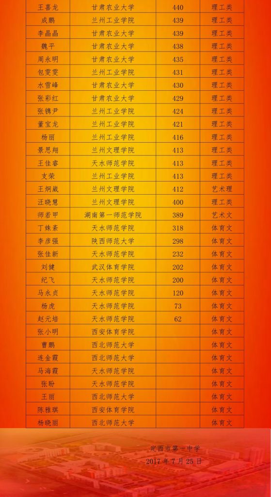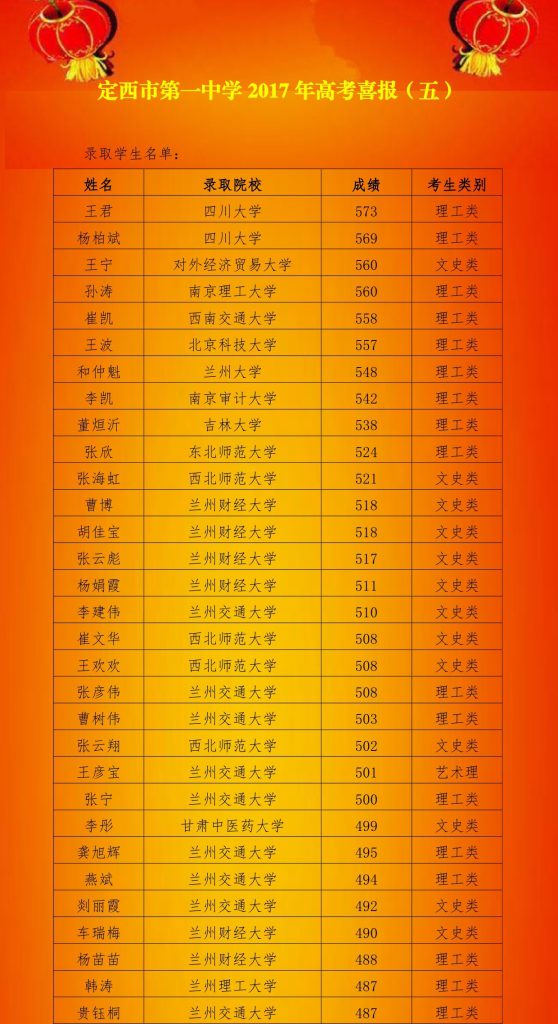 定西市第一中學(xué)2017年高考喜報(bào)(五) 時(shí)間:2017-07-25 分類:高考綜合改革 分享: 上一個(gè): 定西市第一中學(xué)2017年高考喜報(bào)(三) 下一個(gè): 定西市第一中學(xué)2017年高考喜報(bào)(七) 相關(guān)文章 凝心聚力開新局??奮力拼搏譜華章 緊跟高考改革步伐 促進(jìn)教師專業(yè)發(fā)展 云端相聚 受益匪淺 高考喜報(bào) 高考喜報(bào) 強(qiáng)化工作職責(zé) 熟悉工作流程 2017年—2019年高考捷報(bào)頻傳 定西市第一中學(xué)2018年高考喜報(bào)(四)