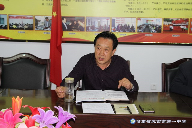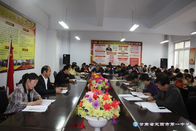 黨委書記張東銳首先向全體與會人員傳達(dá)了“全省基層黨建工作重點(diǎn)任務(wù)推進(jìn)會暨黨支部建設(shè)標(biāo)準(zhǔn)化工作部署啟動會”會議精神,副校長魏嵋組織學(xué)習(xí)了《定西市第一中學(xué)深入開展“轉(zhuǎn)變作風(fēng)改善發(fā)環(huán)境建設(shè)年”活動實(shí)施方案》,黨委副書記趙惠琴組織學(xué)習(xí)了市紀(jì)委《關(guān)于持續(xù)深入推進(jìn)“三糾三促”專項(xiàng)行動的通知》精神。
