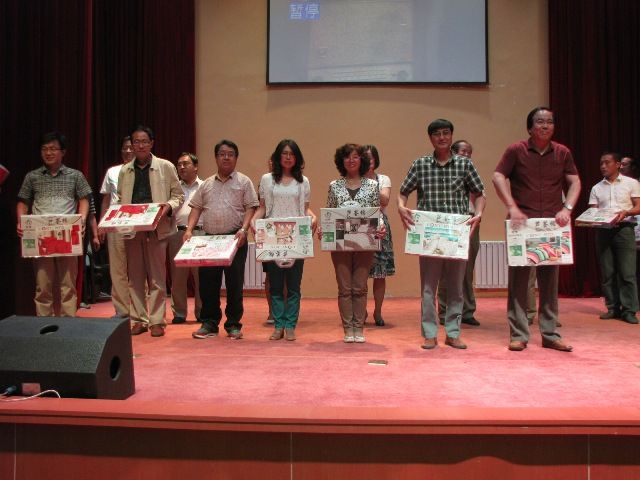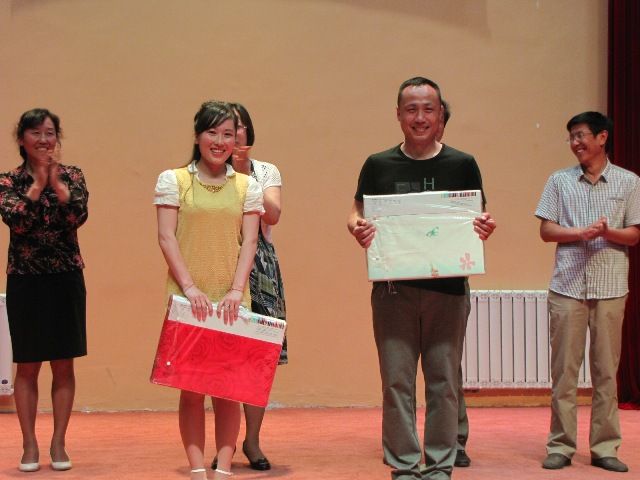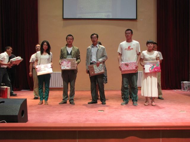 在隨后進行在教職工卡拉ok比賽現場,由各黨支部推薦的選手熱情滿懷,盡展歌喉,充分展示了我校教職工的亮麗風采,贏得了臺下陣陣掌聲,經過激烈的角逐,政史地英黨支部的楊春霞老師和語文黨支部的趙軍平老師獲得一等獎,理化生體學黨支部張勝林等三位老師獲得二等獎,行政黨支部的趙軍霞等五人獲三等獎,學校領導為獲獎選手頒發了獎品。