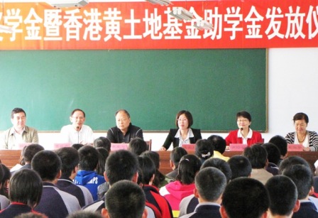 ?????? 盛校長致歡迎詞,代表學校向不辭辛苦、風塵仆仆從香港遠道而來參加資助金發放儀式的黃先生、黃太太和香港黃土地基金的朋友們表示熱烈的歡迎,并對他們給予我校農村貧困學生的無私援助和愛心獎勵表示感謝。盛校長說,香港黃土地基金是非牟利慈善團體,由熱心公益、致力于協助貧困人群的義務工作者所組成,他們為幫助成績優良、家庭貧困的農村學生順利完成學業,成長、成才做出了巨大貢獻。去年捐資五萬元使我校一百名農村貧困生受到資助。此次除了捐資近三萬元繼續資助約六十名我校農村貧困學生外,還捐資近七萬元設立麥羅潤窩獎學金,對我校學習刻苦、成績優秀的四十名左右在校學生和二十五名考入高等院校的大學新生進行獎勵,解決了我校部分品學兼優家庭貧困學生的燃眉之急,體現了香港黃土地基金愛心人士“樂善好施,助學解困”的崇高精神。此外,黃志光主席和夫人黃珍妮女士為我市貧困山區援建了水窖和學校,為定西一中、隴西一中的貧困學生發放助學金和獎學金,并將為岷縣災區援建村莊道路,他們身在香港、心系內地,為了貧困山區的孩子能夠順利完成學業,為幫助受災群眾恢復生產生活,奉獻了拳拳愛心。他們的慈心義舉充分體現了中華同胞血濃于水、情同手足的深情厚意。盛校長希望受到資助的同學永遠銘記香港愛心人士的深切關懷,珍惜這份凝聚著無數希望的愛心,從這份愛心中汲取信心和力量,把這種關愛化作明天對社會的強烈責任感,化作建設家鄉、振興中華的遠大理想,化作克服困難,戰勝困難,發奮學習的巨大動力,以知識改變命運,用學業成就未來,以自強迎接挑戰,用自己優異的成績,過硬的本領更好地報效祖國,報效人民,回報香港黃土地基金愛心人士對我們的關愛和支持。