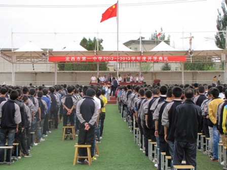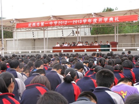 ????? ?頒獎結束后,盛校長發表講話,她首先向新考入我校學習工作的同學們和教師們表示了熱烈的歡迎,向在我校學習工作的全體師生表示了誠摯的問候。接著,盛校長重點介紹了我校在2012年高考中取得的矚目成績。她說,我校今年參加高考人數為1813人,二本上線977人,錄取1070人,名列全市第一,上線率為53.89%。我校高考能取得如此驕人的成績,得益于學校精細化的管理、老師們孜孜不倦的努力和同學們勤奮認真的學習,我們憑著拼搏進取的精神,攜手并肩不斷前行,成就了勢頭強勁,厚積薄發的定西一中。
