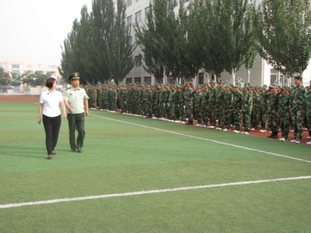 8月24日,我校高一新生結束了為期六天的軍訓,25號早晨,軍訓總結大會在操場舉行,我校1000多名高一新生參加了會操表演。校長盛淑蘭,黨委書記張東銳,副校長趙榮、魏嵋,黨支部副書記宋淑華,工會主席董萬福以及承訓部隊領導人觀看了會操表演并為各班評比打分。大會由政教處主任劉興宇主持。