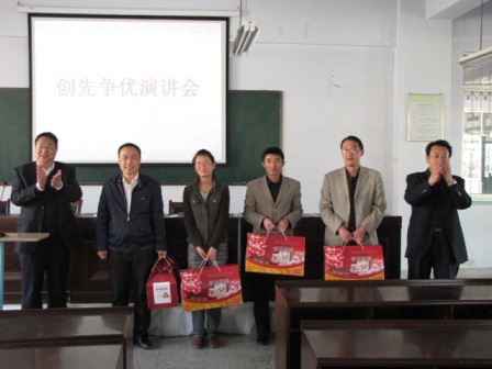 演講結束后,黨支部書記張東銳發表講話。他首先代表學校黨支部對參加演講各位老師表示感謝和祝賀,號召全校教職員工深入學習學習實踐科學發展觀,積極參與“創先爭優”活動。隨后,張書記根據我校“創先爭優”活動實施方案和師德師風建設情況,結合演講內容,就怎樣加強“創先爭優”活動和師德師風建設進行了深入的分析和闡述。??????