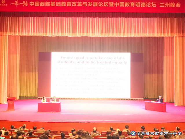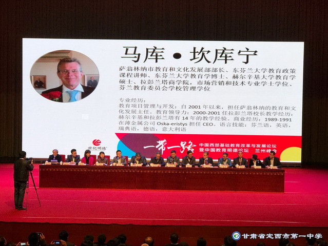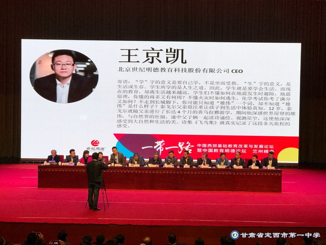 ? ??此次峰會,民進中央副主席、中國教育學會副會長朱永新,原國家副總督學、教育部原基礎教育司司長王文湛,甘肅省教育廳副廳長趙凱,青海省教育廳副廳長薛建華,北京教育科學研究院副院長、河北省教育廳副廳長褚宏啟,教育部基礎教育課程教材發(fā)展中心課程處處長付宜紅,芬蘭薩翁林納市教育與文化發(fā)展部部長Markku Kankkunen,上海市閔行區(qū)教育評估事務所所長高彩霞,中央民族大學教育學院院長蘇德,西北師范大學附屬中學校長賈金元,世紀明德CEO王京凱,世紀明德教育研究院院長李貴章,讀者出版集團有限公司黨委書記、董事長、讀者出版?zhèn)髅焦煞萦邢薰径麻L王永生等專家和嘉賓出席了開幕式。峰會聚焦“深化課程改革與發(fā)展核心素養(yǎng)”、“考試評價改革與教育質量監(jiān)測”、“教育公平與均衡發(fā)展”、“學校管理改革與創(chuàng)新”四大議題,從“一帶一路”的教育維度上緊扣絲路精髓,優(yōu)化教育結構,提升教育質量,推進教育公平,驅動教育發(fā)展。現(xiàn)場千余名教育學家、文化人士、中小學校長和教育官員聆聽了來自基礎教育的改革先聲。