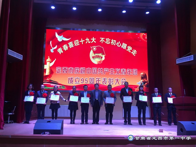 在“五四”青年節來臨之際,5月2日下午,全市慶祝中國共產主義青年團成立95周年表彰大會在我校報告廳隆重舉行。市委書記張令平,市委副書記、市長唐曉明,市委副書記位志榮,市委常委、市委秘書長陳國棟,市人大常委會副主任趙新文,市政協副主席汪東及市政府秘書長張應欽出席表彰大會。張令平為“定西青年五四獎章”獲得者頒獎。唐曉明為“踐行核心價值觀向上向善好青年”等榮譽稱號獲得者頒獎。我校團委榮獲“定西市五四紅旗團委”榮譽稱號。