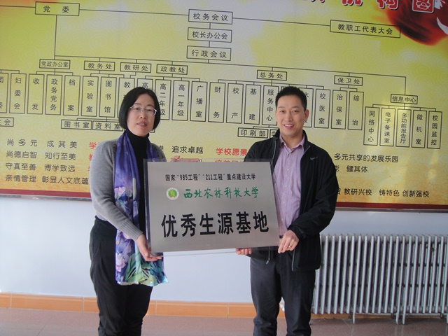 今日,西北農林科技大學授予我校“優秀生源基地”稱號,表達了與我校進一步加強創新型人才培養合作、搞好高等教育與高中教育有機銜接的良好愿望。
