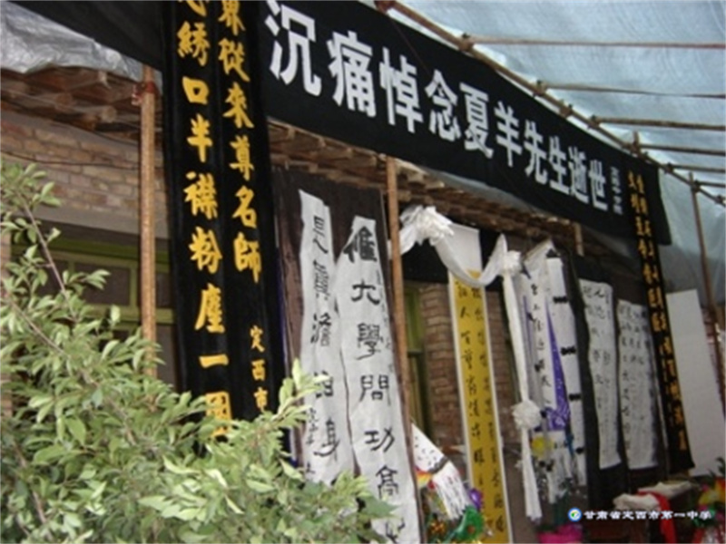 ? 7月4日,夏羊老師的追悼會在定西舉行,追悼會由賈國江校長主持,定西市教育局局長崔振邦致悼詞。有80多家單位和130多位個人發來了唁電,送來了花圈、挽幛和挽聯,以表達這位為定西乃至甘肅的文學和教育作出巨大貢獻的詩人和教育前輩的深切悼念之情。