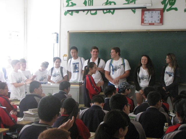 訪問團在我校交流期間,與高一(12)班、(13)班、(16)班分別進行TPRS教學交流活動,和我校師生學生進行了面對面的交流與溝通,活動現場氣氛熱烈,高潮迭起。