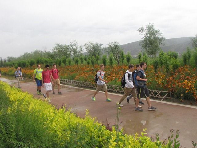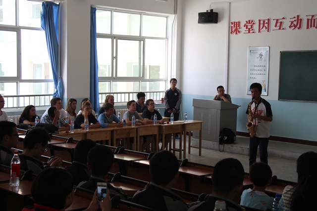 在隨后的活動中,在學校領導的帶領下,美國客人游覽了玉湖公園、西巖寺、定西生態園、點將臺、馬家窯文化廣場、定西公園等,了解定西,體驗中國傳統文化以及定西的生活環境;和我校師生共進午餐和晚餐,感受定西小吃文化及特色;到結對子的同學家中住宿,感受中國學生的家庭生活,與同學們相互交流,并與我校學生進行友誼籃球比賽和文藝聯歡會。